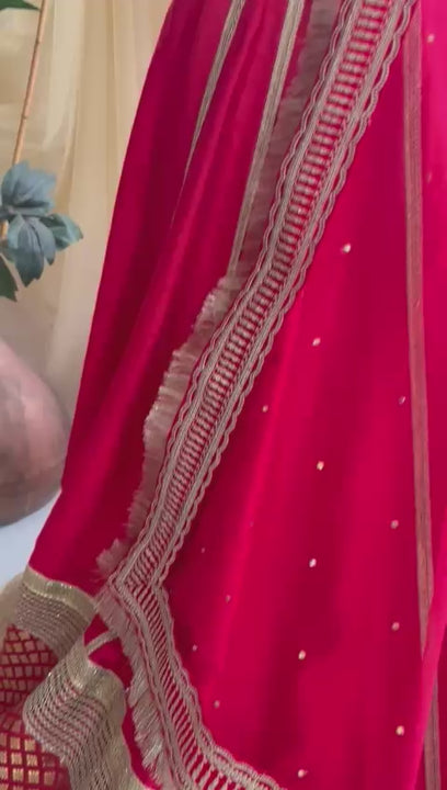 Lightweight yet grand, this dupatta effortlessly elevates any bridal or festive ensemble — from lehengas to anarkalis — adding a perfect balance of glamour and grace.